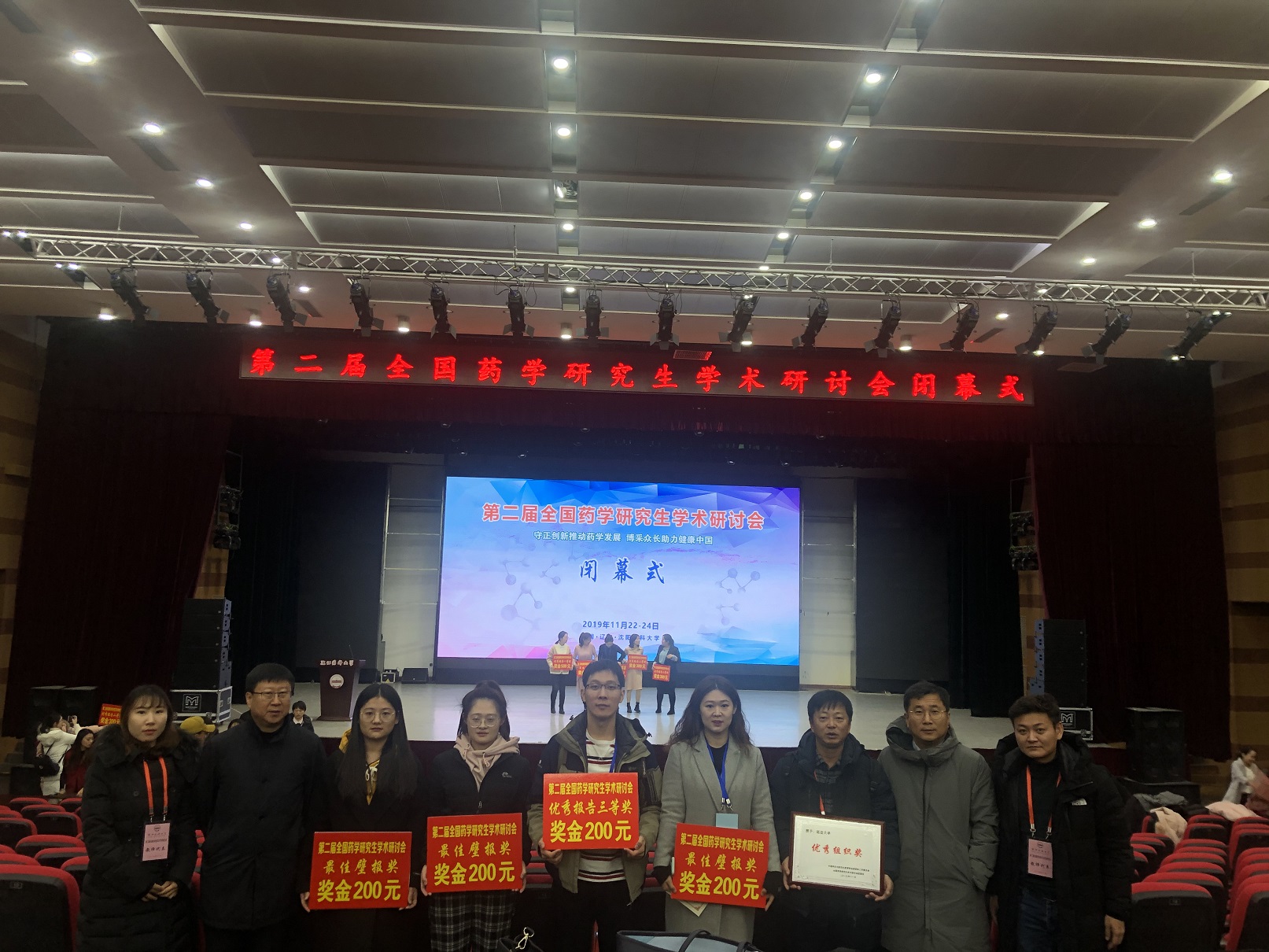 药物化学专业2017级博士研究生王喆获得了优秀报告三等奖和最佳壁报奖;由金学军院长指导的药物化学专业2019级博士研究生王晶莹,由闵俊哲老师指导的药学专业2018级硕士研究生满小溪,由朴明贯老师指导的药剂学专业2018级硕士研究生杨文均获得了最佳壁报奖。展现了我校药学类研究生的风采风貌,也体现出了我校药学教育教学水平和人才培养质量在不断提高,对促进继续深化教学改革具有重要意义。