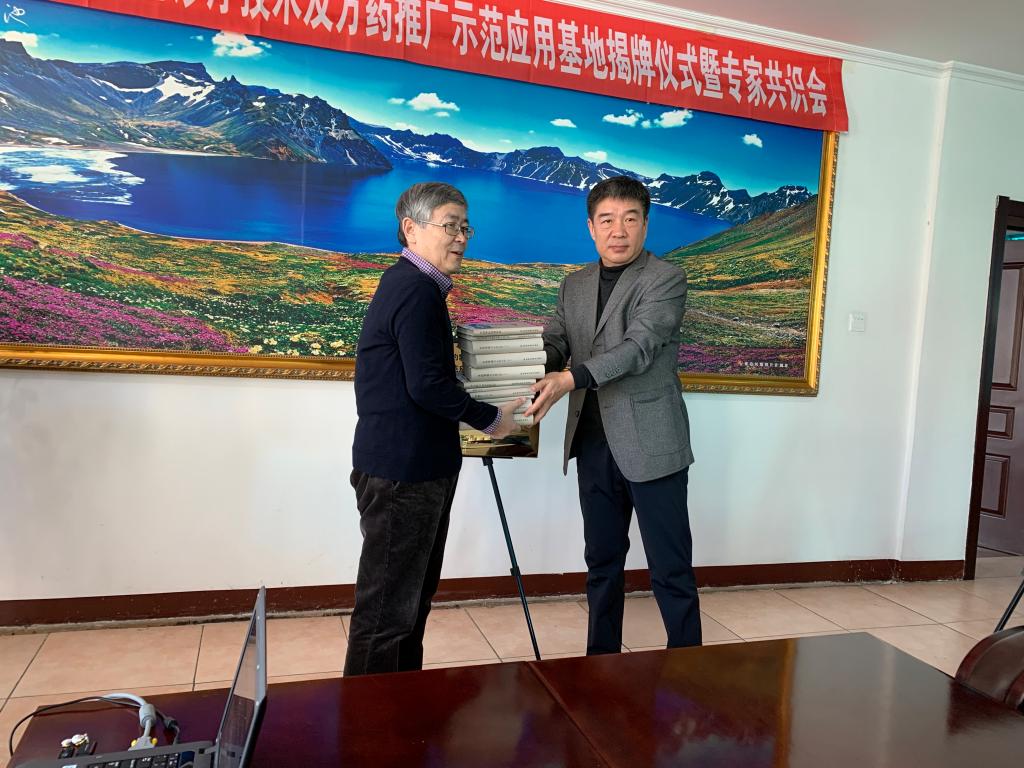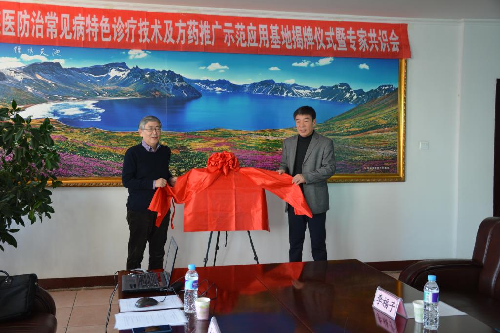 会上,延边大学国家民委朝药研究重点实验室主任南极星和延边朝医医院院长张斗元,为“民族医防治常见病特色诊疗技术及方药推广示范应用基地”揭牌,与会专家围绕朝医药的研究与开发进行深入探讨。张斗元院长还向重点实验室赠送延边朝医医院主持编著的《国家中医药管理局民族医药文献——朝医药系列丛书》。