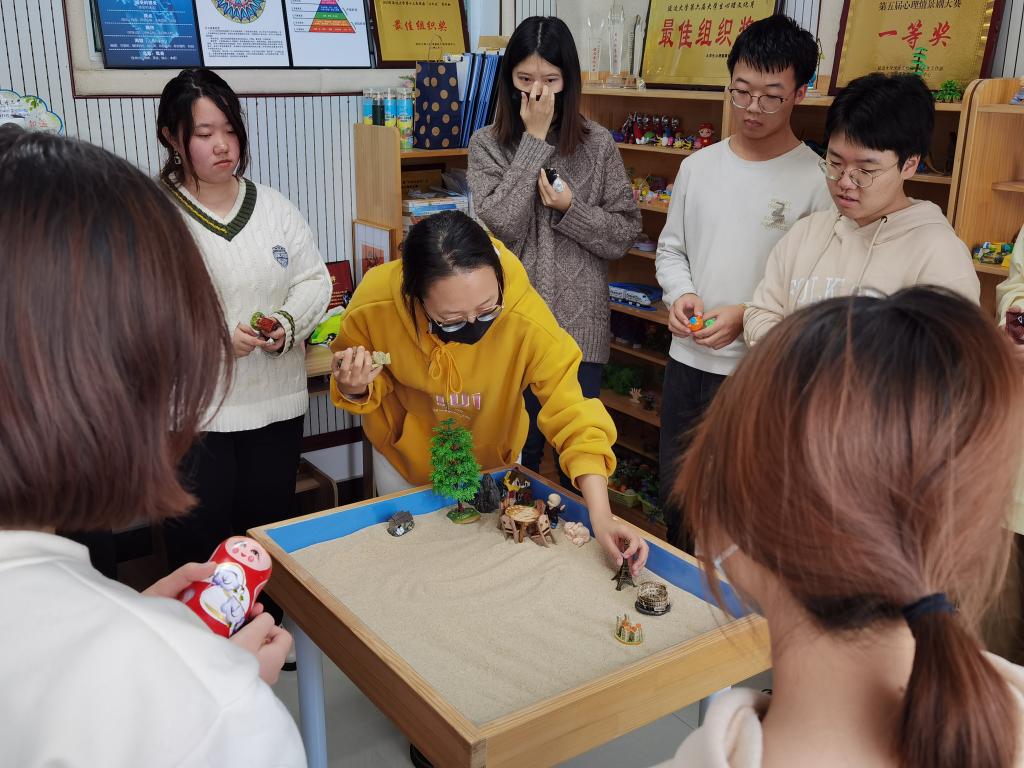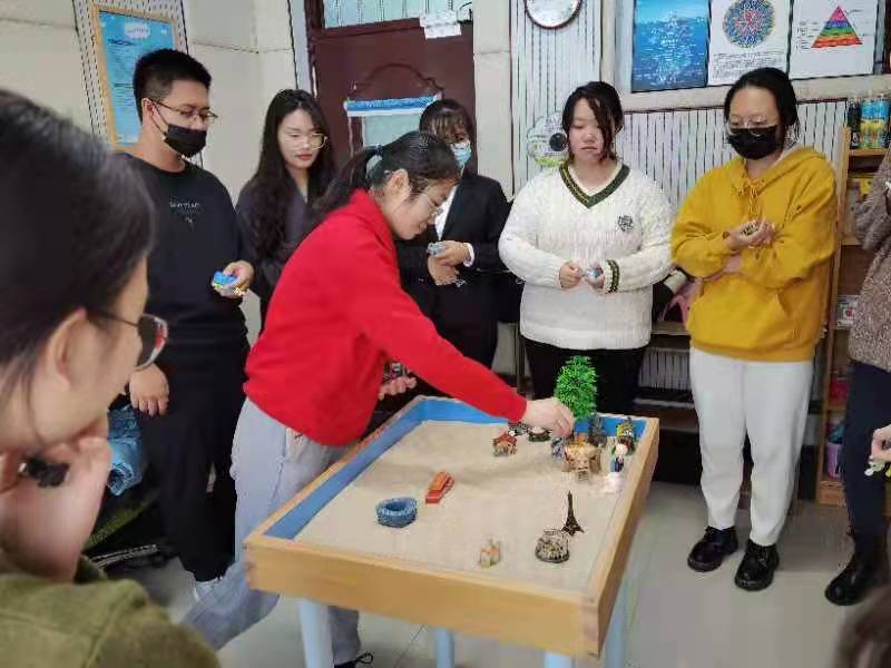 通过沙盘团体心理辅导,同学们能够通过沙盘内的人际交互作用,透过沙具呈现未知的自我,探索自我;同时,同学们相互观察、相互发现、相互促进、共同成长,达到调整和改善与他人的关系,促进良好的适应、发展、助人与自助的目的。