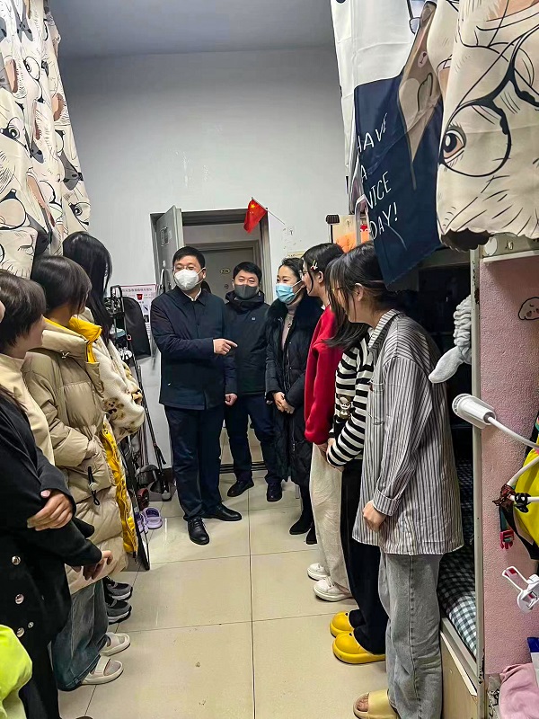 走访过程中,领导老师与同学们亲切交谈,详细了解同学们的生活情况,对同学们学习以及生活中的困惑给予解答;提醒同学们及时调整生活和学习状态,尽快适应新学期新生活;提醒同学们注意健康防护,做好春季流行病的预防;勉励同学们珍惜校园时光,充分利用学校的各种资源,促进综合素质的发展。同时希望同学们能营造良好的宿舍环境与氛围,养成良好的生活习惯,共同进步,珍惜同窗缘分,和睦相处。