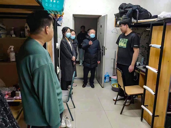 领导和辅导员老师们一同深入宿舍走访,慰问返校同学,第一时间为学生送去温暖。
