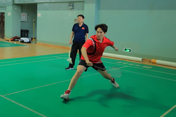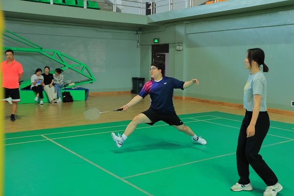 中午11:30,举行羽毛球友谊赛,老师和学生随机组成12支师生混双队伍,实施21分制和三局两胜,6场比赛结束后,教师混双和学生混双表演赛将友谊赛推向高潮。下午16:00,举行足球友谊赛,比赛实施9人制。比赛中,无论是教师还是毕业生均充分展示个人风采,比赛精彩纷呈,教师展现了丰富的经验,毕业生展现了精湛的技术和充沛的体力,友谊赛全程在轻松、愉悦的氛围中进行。