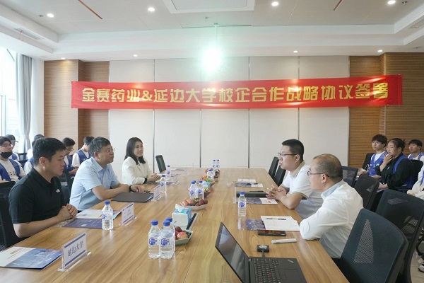党委书记修景会,党委副书记赵成日,团委书记、研究生辅导员李海兰一行3人走访吉林省金派格药业有限公司(金赛药业集体旗下法人公司)。吉林省金派格药业有限公司总经理刘阳、运营部经理刘志强、人力资源部经理郝伟伟与我院师生座谈。