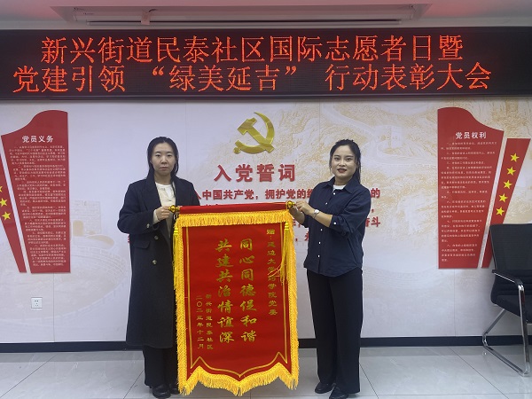 12月5日,延吉市新兴街道民泰社区召开国际志愿者日暨党建引领“绿美延吉”行动表彰大会,民泰社区党总支书记宋信玉为太阳城娱乐